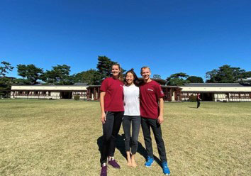 在学中に体操指導者と記念撮影