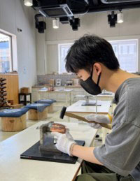 卒業研究では「地方創生に向けた地域ブランディングに関する研究」をしました。地方創生に向けた地域ブランディングのカギを明らかにすることを目的に、「まち」「ひと」「しごと」の3つの視点からグループで研究を行い、私は地域に根差した醸造会社のマーケティングについて調査研究を行いました。そして、地方活性化に向けた取り組みについて分析し、地方創生に向けた地域ブランディングのカギを明らかにしました。 現在私は老舗のお酢屋で酒造り・酢造りを担当しています。原料の農薬不使用の米からお酢まで一貫生産しています。私は酒造り・酢造りを担当していますが、今年度に入りイベントリーダーなども担当することになりました。卒業研究では研究対象の一つに弊社を選びました。それにより、弊社がどのような会社で、どのような取組をしているか、入社前に深く知ることができました。また、学外研修制度を活用して、泊まりで二回現場に訪れ実際に働き、職人の方のお話を聞きました。それが卒業後の進路に大きく影響しました。