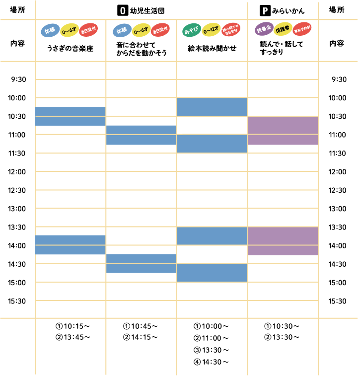 時間指定のある企画のみ表にしています。