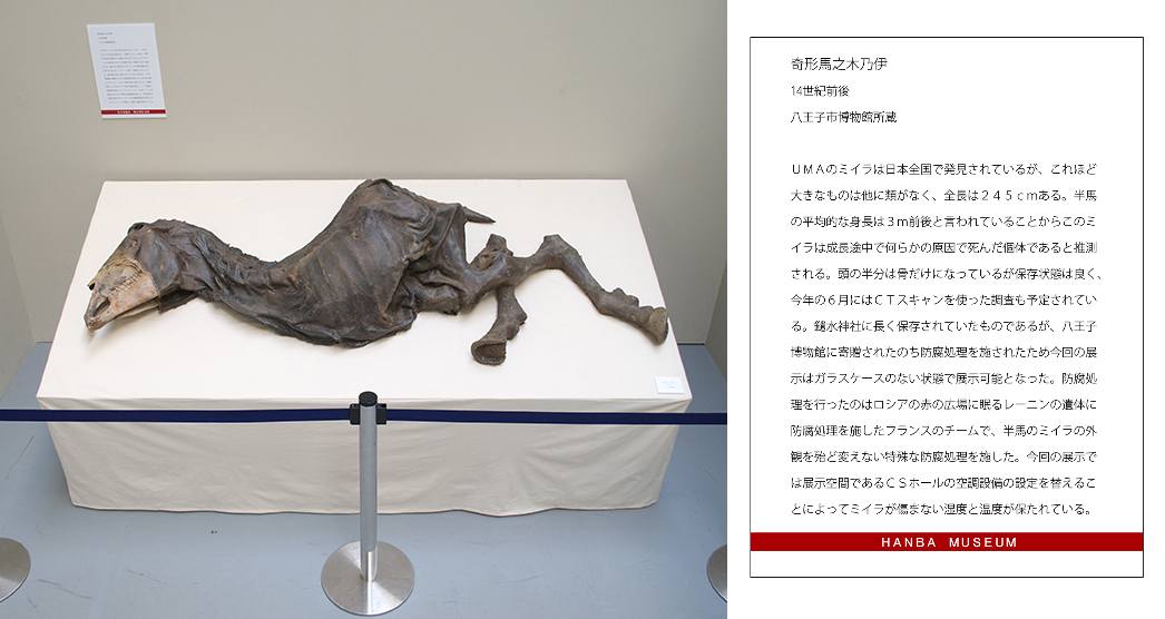 『半馬博物館(2009)』の半馬ミイラと解説(本人提供)
