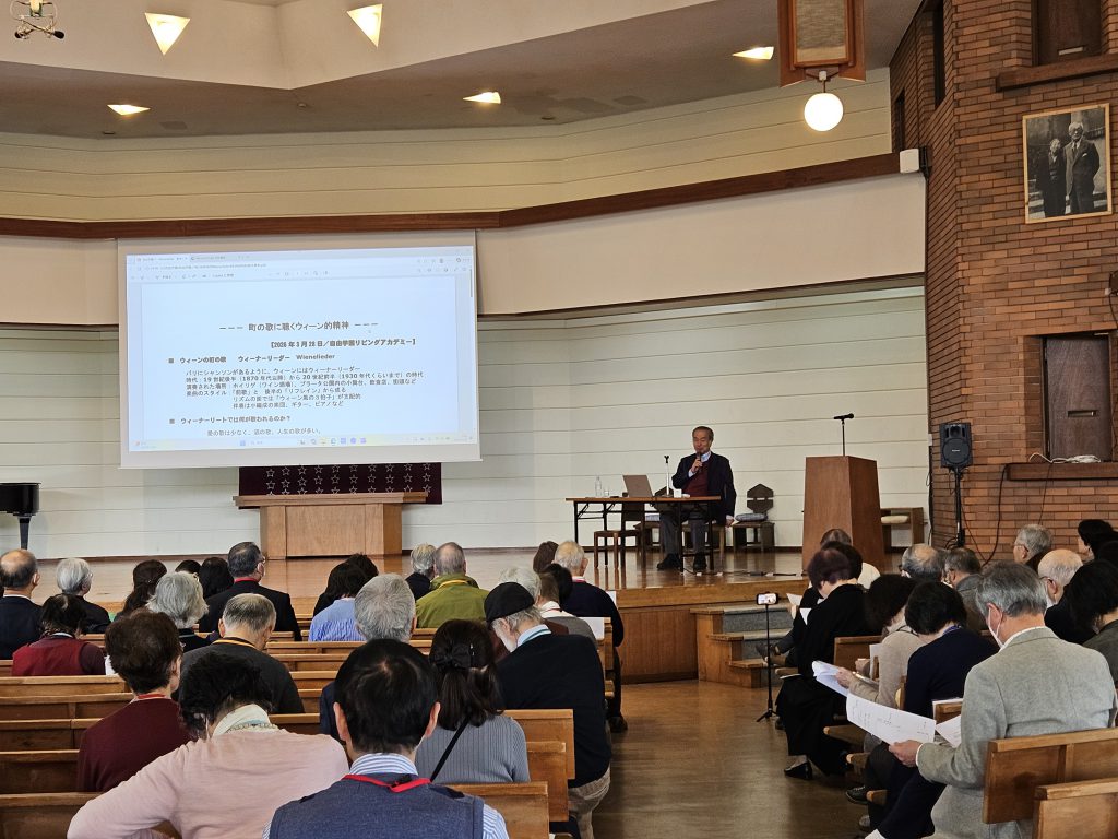 今年度最後の教養講座は、一橋大学名誉教授の田辺秀樹氏が『町の歌に聴くウィーン精神』と題して、お話をしていただいた。