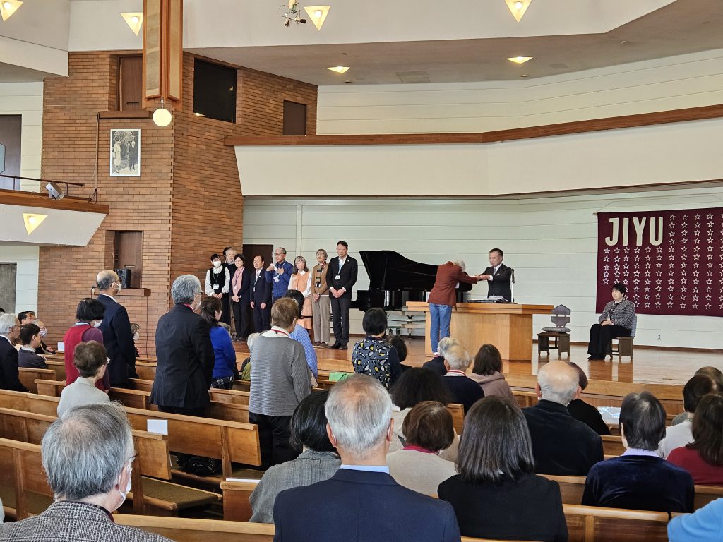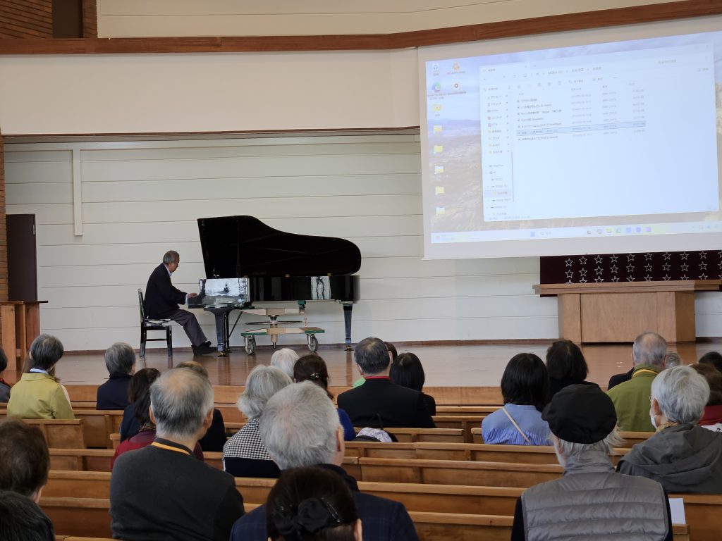 はじめに、石川リーダーの司会で礼拝が行われ、讃美歌405番「神と共にいまして」を賛美した。